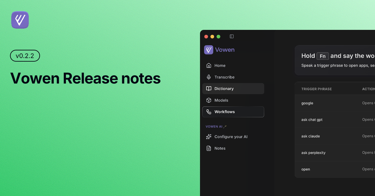 Thanks to everyone who submitted feedback and bug reports — you're helping shape Whispr into a better tool. Keep it coming at feedback@vowen.ai